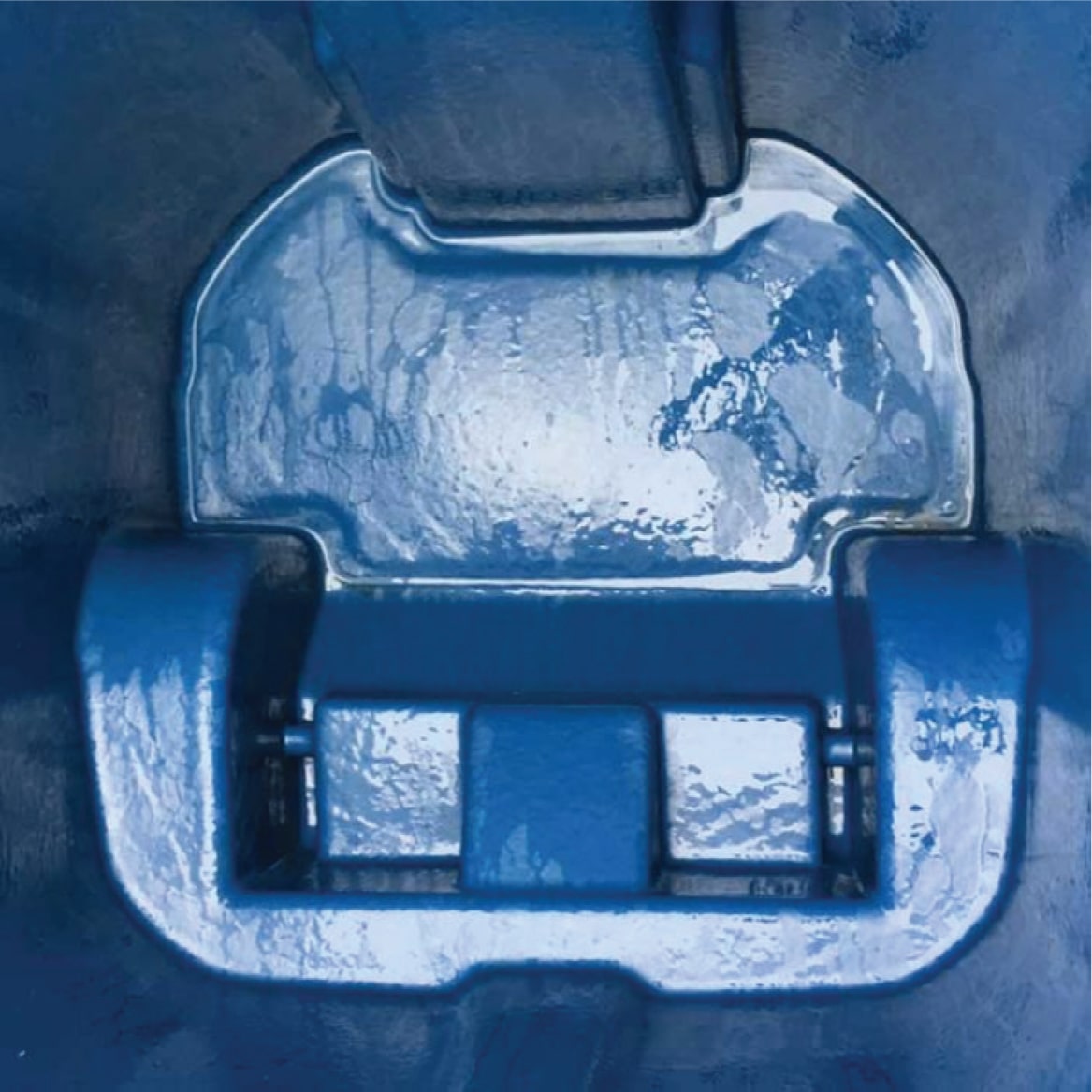 Step 1 Bins are loaded upside-down onto 3,500 PSI power-wash heads spinning at 360 degrees